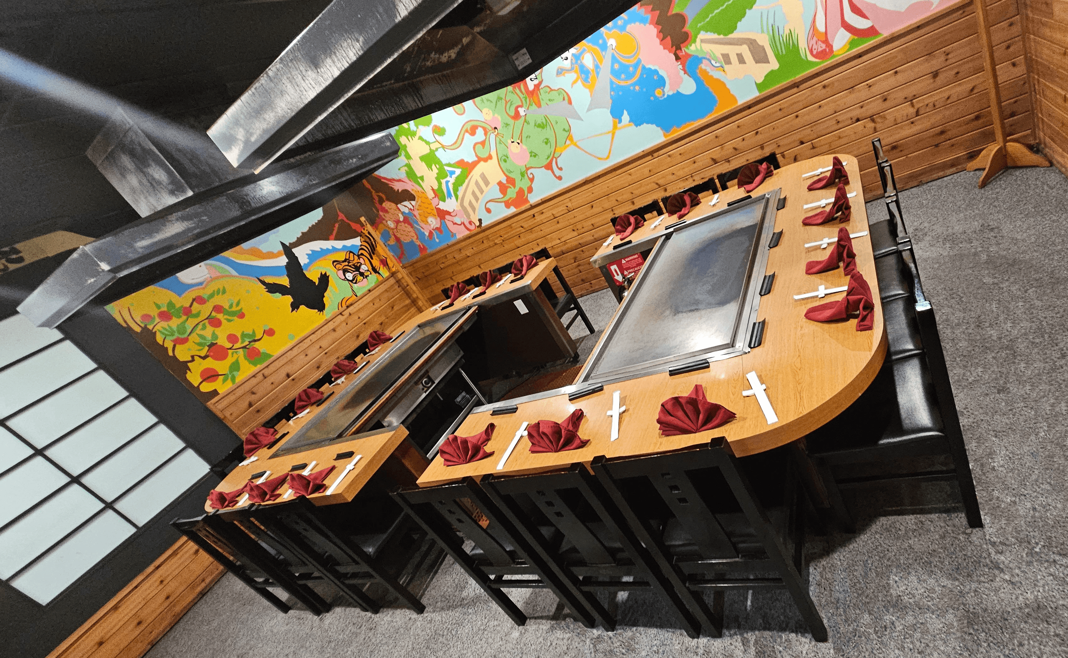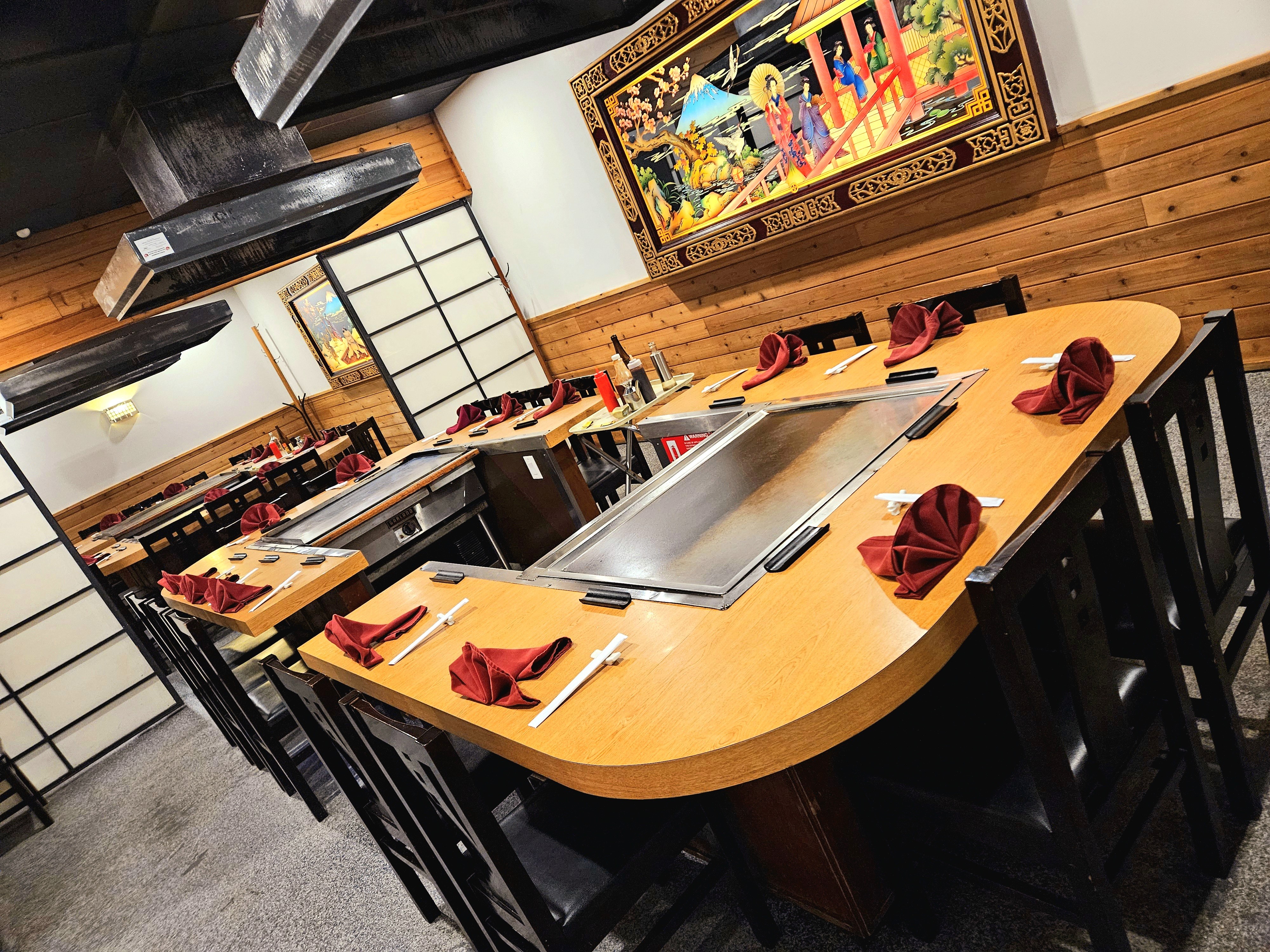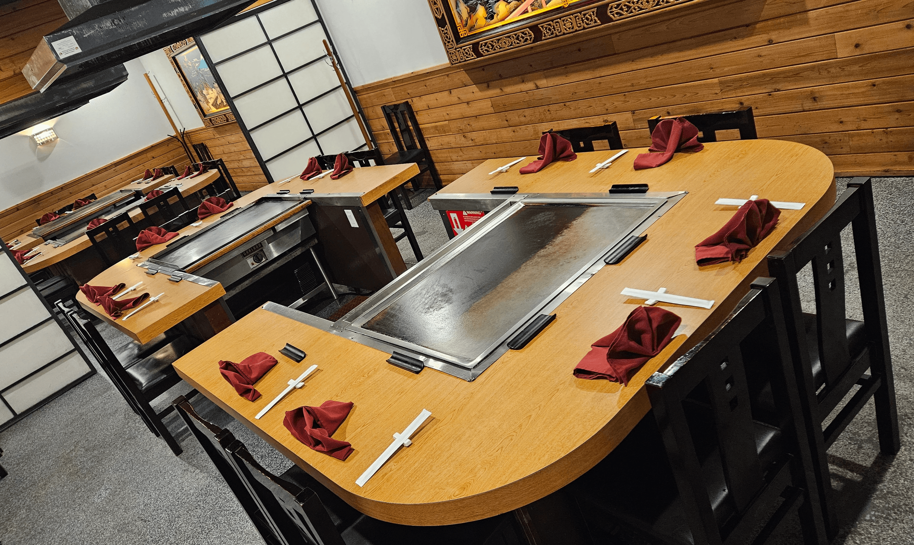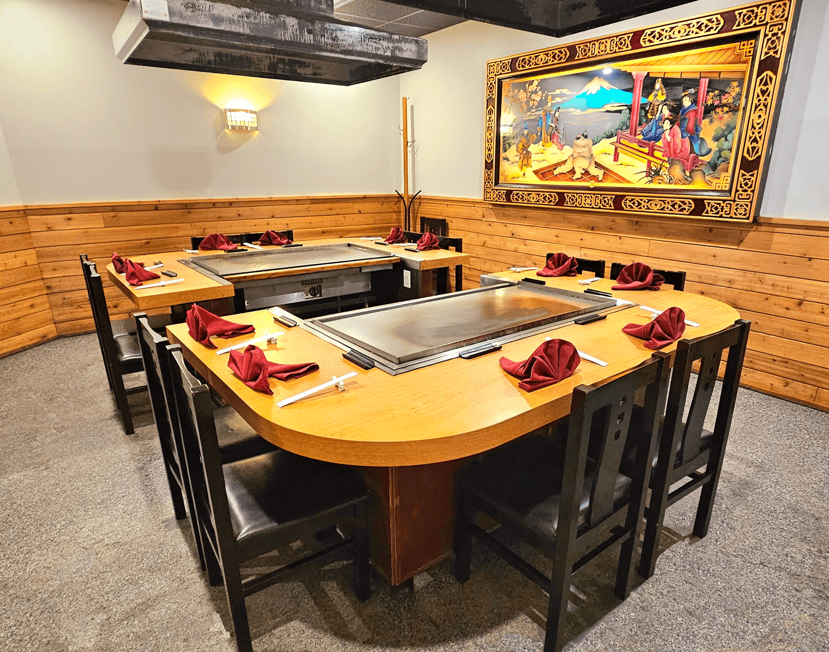 The word Teppanyaki is derived from "Teppan", which means iron plate, and "yaki", which means grilled. Teppanyaki refers to dishes cooked using an iron plate. Teppanyaki has a vast menu selection catering to many different tastes and palates. We offer a vegetarian option and cater to guests with shellfish allergies.
